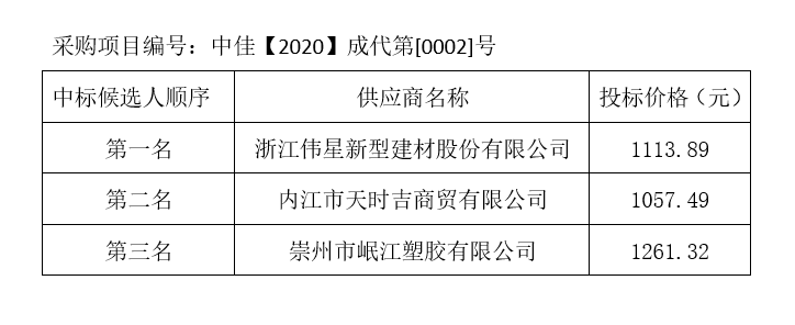 內(nèi)江市水務(wù)有限責(zé)任公司PPR給水管及管件采購項目評標(biāo)結(jié)果公示