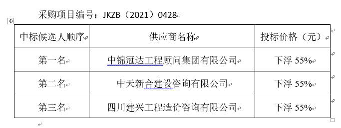內(nèi)江市應(yīng)急供水搶險基地工程項目造價咨詢(編制)服務(wù)標(biāo)段評標(biāo)結(jié)果公示