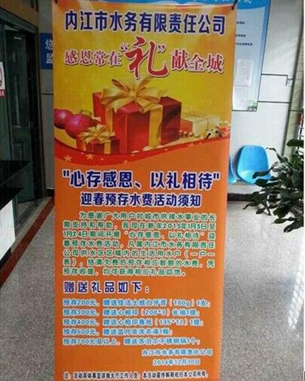 為感謝廣大用戶對城市供排水事業(yè)的長期支持和幫助,我司在2015年1月5日至1月24日期間開展“心存感恩、以禮相待”迎春預(yù)存水費(fèi)活動。本次活動由客戶服務(wù)部牽頭,在白馬辦事處、物資供應(yīng)部和機(jī)關(guān)各部門的支持配合下,圓滿結(jié)束。