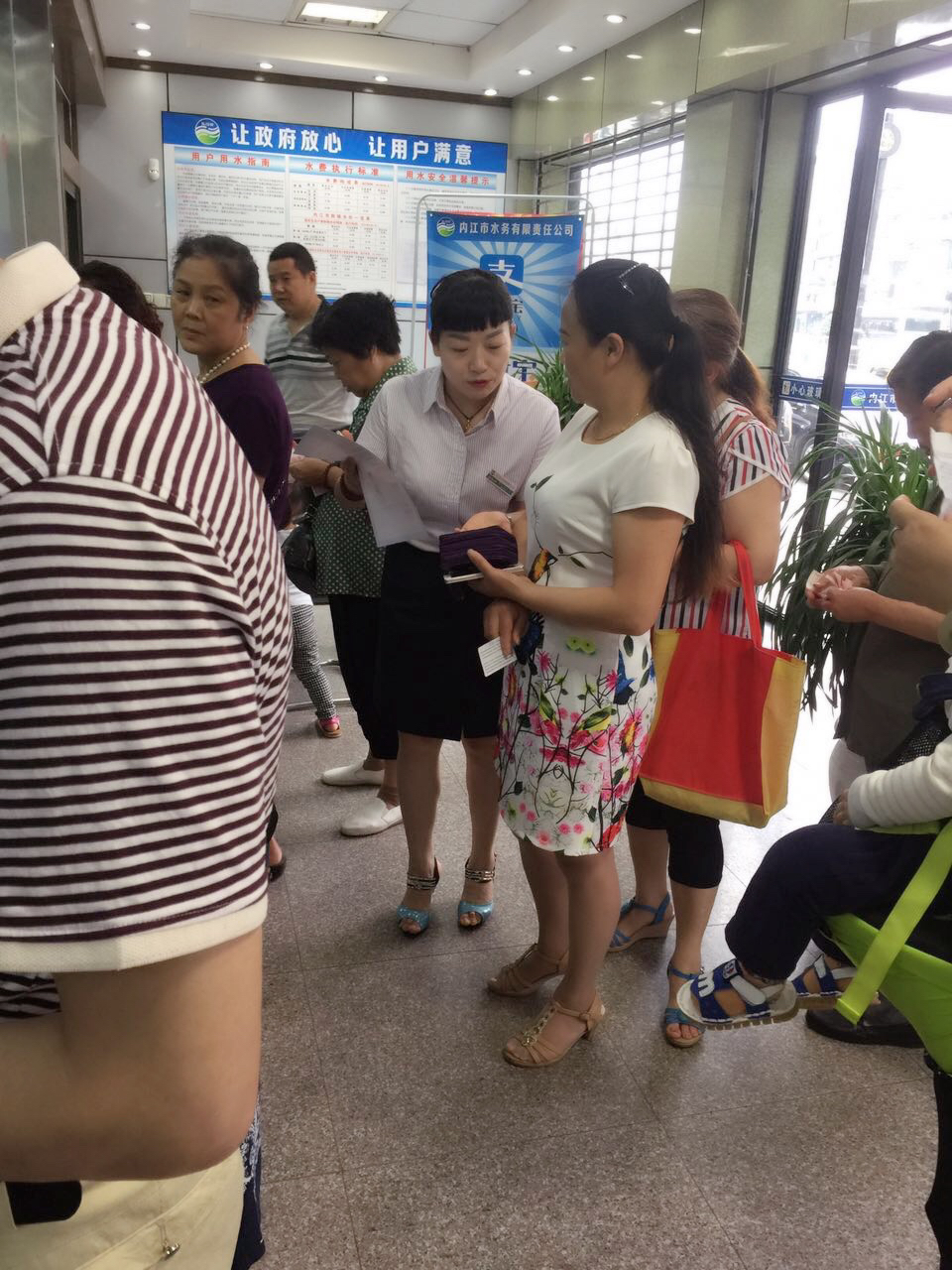 為宣傳推廣公司代收水費業(yè)務(wù),公司客戶服務(wù)部組織賬務(wù)組的工作人員在收費高峰期到每個收費室進(jìn)行代收費業(yè)務(wù)的宣傳。工作人員手拿宣傳單走進(jìn)繳費人群中,熱情仔細(xì)給用戶講解水費代收費業(yè)務(wù),并用手機(jī)手把手教用戶怎么使用翼支付和支付寶手機(jī)繳費。通過幫助用戶學(xué)習(xí)掌握手機(jī)繳費,免去用戶在酷暑和寒冬排隊繳費的煩勞。