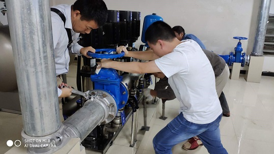 9月17日下午,豪鵬二供公司巡查人員在開展計劃性設備巡檢時,在公園一號小區(qū)泵房內(nèi)發(fā)現(xiàn)加壓設備出現(xiàn)重大安全隱患,即高區(qū)加壓設備出水橫管出現(xiàn)嚴重傾斜和管道卡箍產(chǎn)生部分位移,造成與管道相連的柔性接頭存在隨時破裂漏水可能。在泵房隔壁就是整個小區(qū)配電室,如泵房內(nèi)管道漏水將直接對配電室造成威脅。面對險情,豪鵬公司立即組織技術人員進行搶修,于當晚10:30成功消除安全隱患。此次搶修工作得到豪盛安裝公司的大力支持和配合。